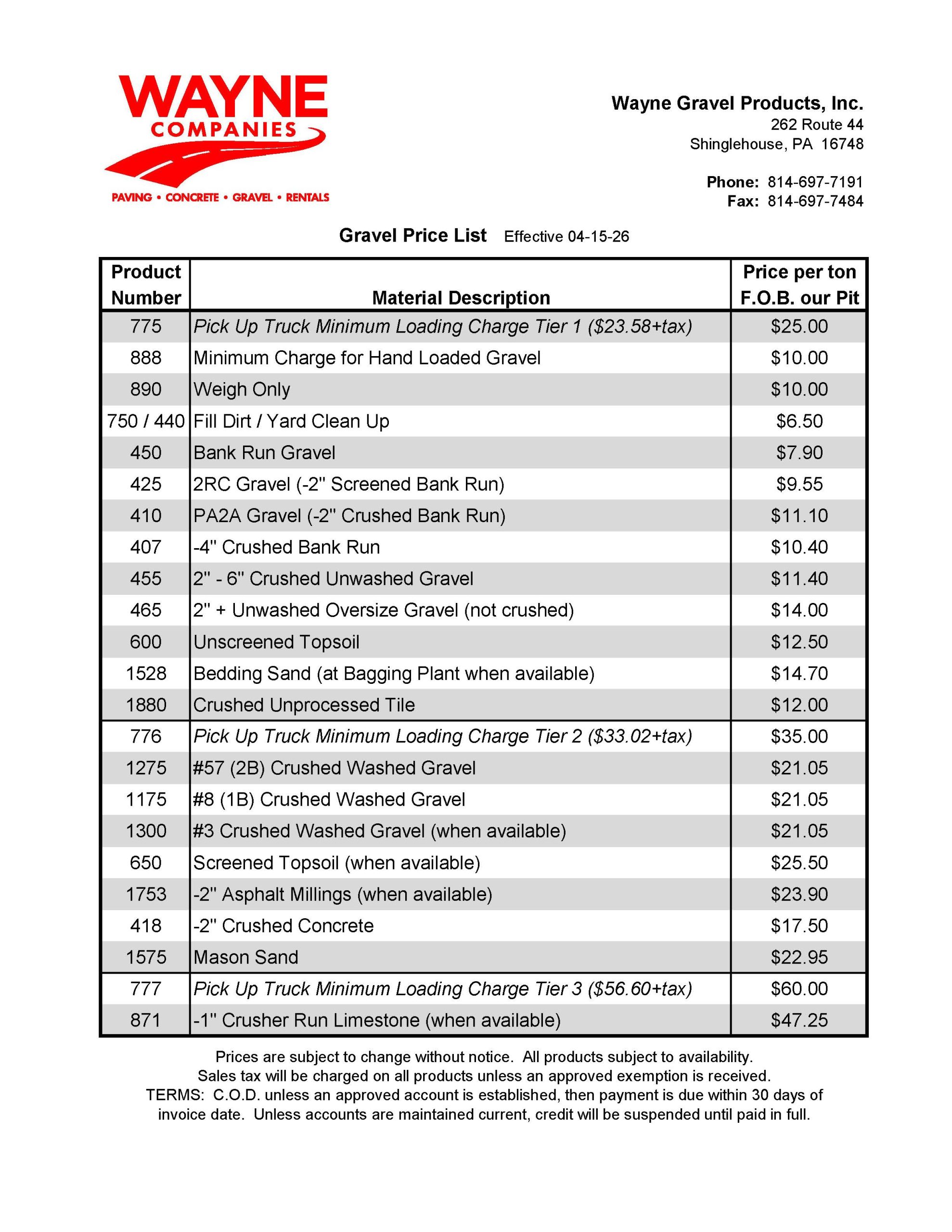 Call our gravel dispatch today at 814-697-7191